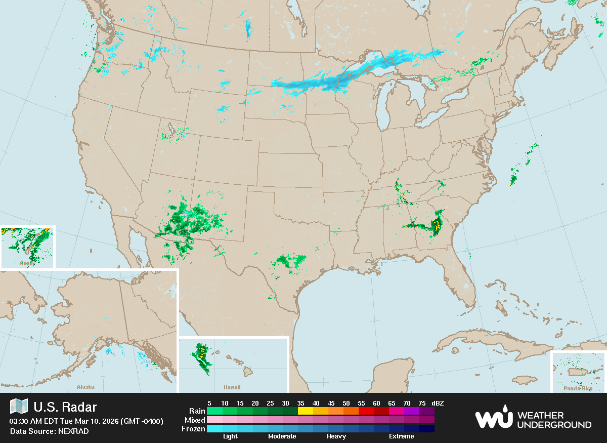 Radar and map images courtesy of Weather Underground. Thanks to Tom at Carter Lake, Jim at Juneau County Weather and Ken at Saratoga-Weather for the display script for this page. |
