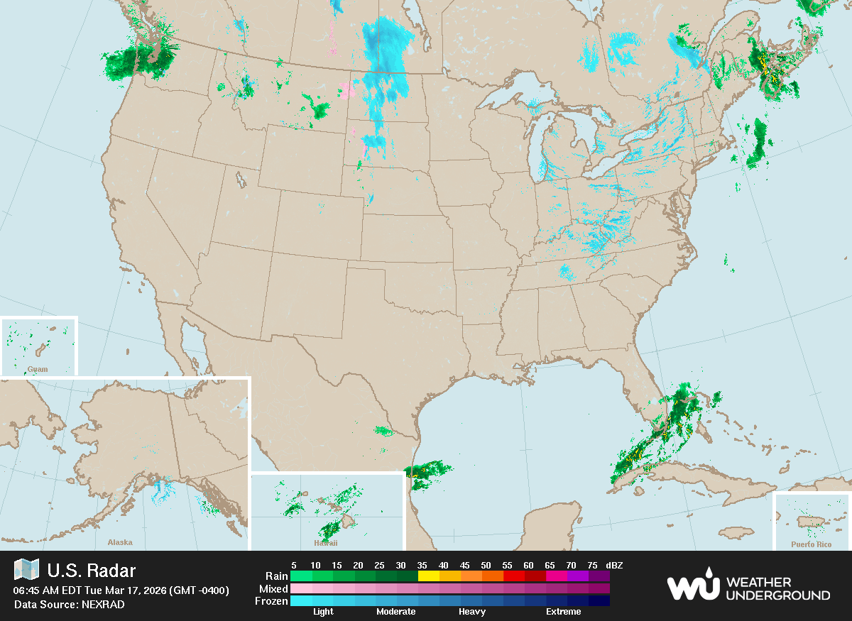 Radar and map images courtesy of Weather Underground.